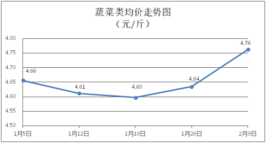 据本市21家农贸市场监测数据显示,上周(2月3日至2月9日)市场上各类“菜篮子”商品供应充足,与节前一周相比,所监测的7大类“菜篮子”商品价格总体表现为6涨1平。其中:粮油类商品价格基本平稳,肉禽蛋类、蔬果类、水产类商品价格总体有所上涨。