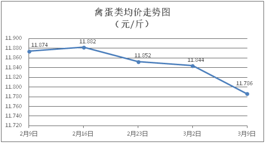 禽蛋类商品价格小幅下降。所监测的5种禽蛋类商品价格波动情况为4跌1平,综合零售均价为每斤11.786元,环比下降0.49%。其中:白条鸡、白条鸭零售均价分别为每斤20.46元、15.24元,环比分别下降0.49%、下降0.13%;鸡蛋、鸭蛋零售均价分别为每斤6.43元、7.66元,环比分别下降2.43%、下降0.13%。