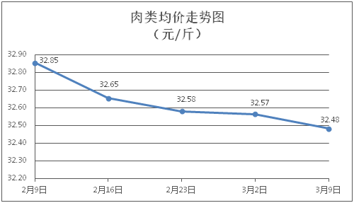肉类商品价格窄幅盘降。所监测的8种肉类商品价格波动情况为3涨5跌,综合零售均价为每斤32.48元,环比下降0.25%。其中:排骨、精瘦肉、牛肉、带骨羊肉零售均价分别为每斤31.45元、19.78元、46.66元、41.13元,环比分别下降0.13%、上涨0.25%、上涨0.15%、下降1.32%。