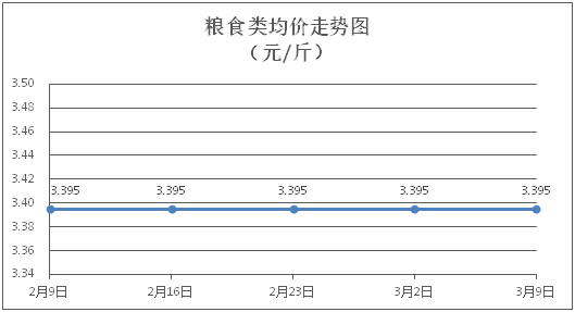 粮食类商品价格保持稳定。所监测的4种粮食类商品价格均持平,综合零售均价为每斤3.395元。其中:丝苗米、面粉零售均价分别为每斤3.54元、3.40元,环比均持平。
