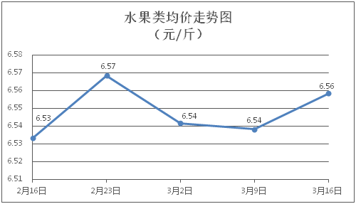 水果类商品价格略有上涨。所监测的6种水果商品价格波动情况为4涨1跌1平,综合零售均价为每斤6.56元,环比上涨0.31%。其中橙子、苹果、葡萄零售均价分别为每斤6.01元、7.51元、13.75元,环比分别上涨0.67%、上涨0.27%、上涨0.51%。