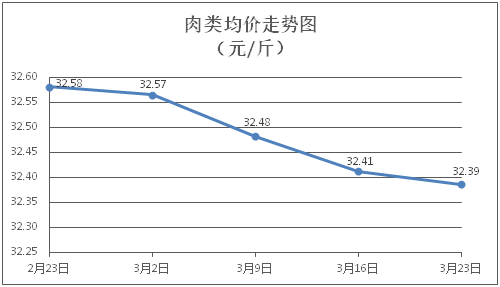 肉类商品价格弱势盘整。所监测的8种肉类商品价格波动情况为4涨3跌1平,综合零售均价为每斤32.39元,环比下降0.08%。其中:排骨、精瘦肉、有皮上肉、牛肉、带骨羊肉零售均价分别为每斤31.31元、19.68元、15.97元、46.41元、40.80元,环比分别下降0.38%、上涨0.05%、上涨0.38%、下降0.17%、下降0.34%。