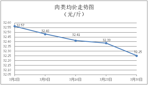 肉类商品价格微幅下降。所监测的8种肉类商品价格波动情况为6跌2平,综合零售均价为每斤32.25元,环比下降0.41%。其中:排骨、精瘦肉、牛肉、带骨羊肉零售均价分别为每斤31.18元、19.66元、46.13元、40.80元,环比分别下降0.42%、下降0.10%、下降0.60%、持平。