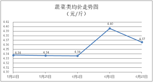 据本市21家农贸市场监测数据显示,上周(6月9日至6月15日)市场上各类“菜篮子”商品供应充足,所监测的7大类“菜篮子”商品价格环比总体表现为1涨5跌1平。其中:粮油类商品价格基本平稳,肉禽蛋类、蔬果类商品价格总体略降,水产类商品价格窄幅盘整。