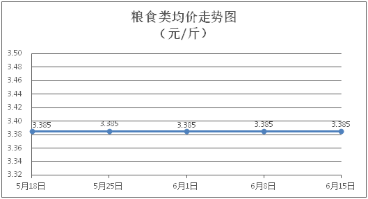 粮食类商品价格保持稳定。所监测的4种粮食类商品价格均持平,综合零售均价为每斤3.385元。其中:丝苗米、面粉零售均价分别为每斤3.50元、3.40元,环比均持平。