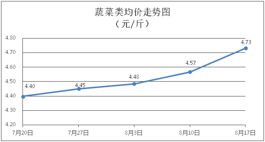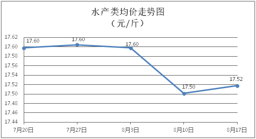 据本市21家农贸市场监测数据显示,上周(8月11日至8月17日)市场上各类“菜篮子”商品供应充足,所监测的7大类“菜篮子”商品价格环比总体表现为3涨3跌1平。其中:粮油类商品价格基本平稳,肉禽蛋类、水果类商品价格微幅下降,蔬菜类、水产类商品价格总体略涨。
