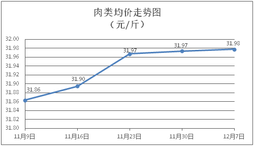 肉类商品价格微幅波动。所监测的肉类商品价格波动情况为4涨4跌,综合零售均价为每斤31.98元,环比上涨0.01%。其中:排骨、精瘦肉、牛肉、带骨羊肉零售均价分别为每斤29.93元、18.25元、47.03元、41.33元,环比分别下降0.56%、下降0.71%、上涨0.15%、下降0.24%。