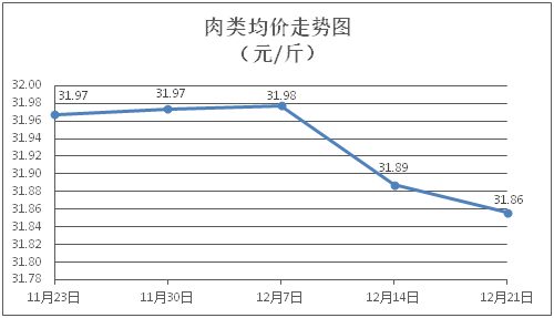 肉类商品价格总体略降。所监测的肉类商品价格波动情况为3涨5跌,综合零售均价为每斤31.86元,环比下降0.10%。其中:排骨、精瘦肉、牛肉、带骨羊肉零售均价分别为每斤29.60元、18.16元、46.87元、41.48元,环比分别下降0.13%、下降0.16%、下降0.36%、上涨0.27%。