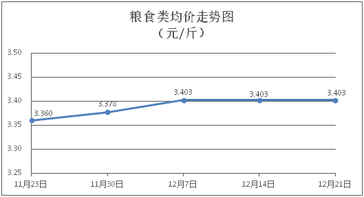 粮食类商品价格保持稳定。所监测的4种粮食类商品价格均持平,综合零售均价为每斤3.403元。其中:丝苗米、面粉零售均价分别为每斤3.54元、3.34元,环比均持平。