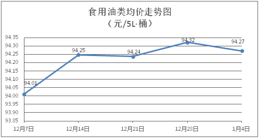 食用油类商品价格基本平稳。所监测的食用油(5L装)商品价格波动情况为1涨2跌6平,综合零售均价为每桶94.27元,环比下降0.05%。其中:鲁花花生油、金龙鱼调和油零售均价分别为每桶155.75元、70.83元,环比分别下降0.43%、上涨0.50%。