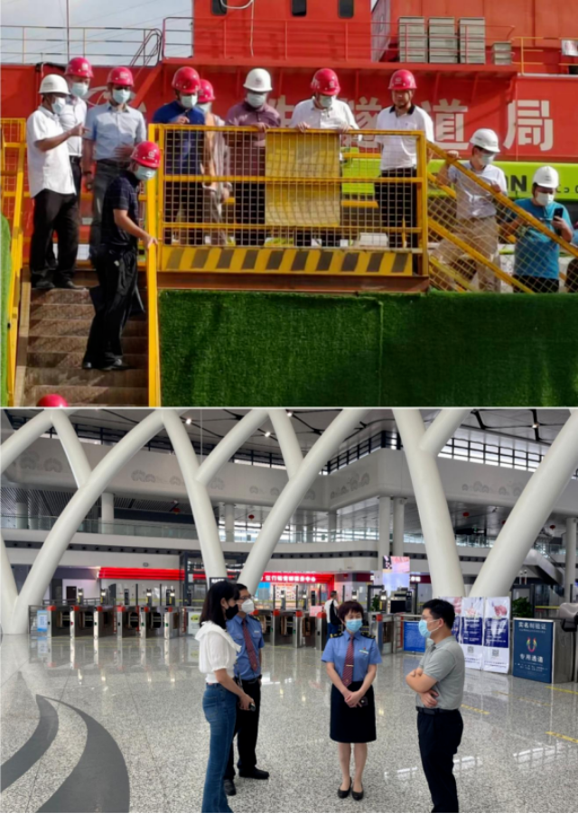 加强江门站、江门东站疫情防控检查,确保站场进行定期消毒、通风,设置隔离留观区、严格落实进站旅客“三个100%”(测温、扫码、佩戴口罩)、出站旅客“五个100%”(戴口罩、测温、打卡场所码、核验健康码和行程码)的查验工作,提醒旅客保持安全距离、做好个人防护、加强“落地检”、车站服务人员要做好自我防护等相关工作。两站均制定应急预案,对健康码显示黄码或红码人员实施闭环管理。开展铁路建设项目现场检查,我市铁路建设安全生产形势持续稳定。