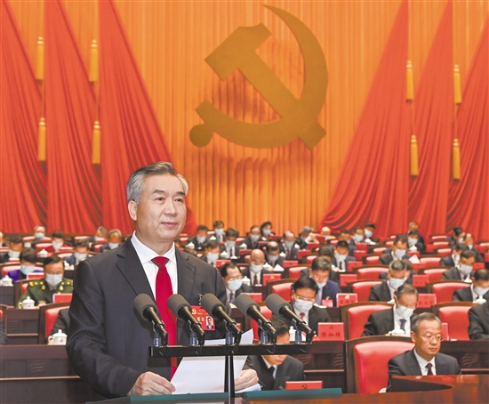 李希代表中国共产党广东省第十二届委员会向大会作报告。 王辉 张冠军 李细华 万稳龙 摄