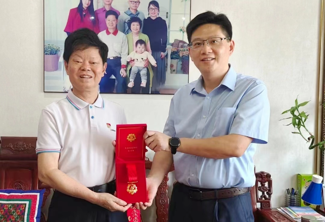 6月21日上午,市发展改革局党组书记、局长胡其波来到50年党龄的老党员邓国冠家中,与老同志亲切交谈,详细了解其身体、生活状况,认真倾听他的过往工作经历,虚心听取他们的意见建议。对老同志为江门经济社会发展作出的积极贡献表示感谢,希望老党员们能一如既往地关心支持江门的发展,多建言献策,为推动江门高质量发展贡献更多智慧和力量。胡其波还向邓国冠颁发“光荣在党50年”纪念章。