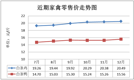 白条鸡、白条鸭零售均价分别为每斤20.49元、15.56元,环比分别上涨0.54%、上涨1.97%,同比分别上涨7.73%、上涨9.89%;白壳鸡蛋、鸭蛋零售均价分别为每斤7.28元、7.79元,环比分别上涨3.56%、上涨1.83%,同比分别上涨16.29%、上涨12.57%。