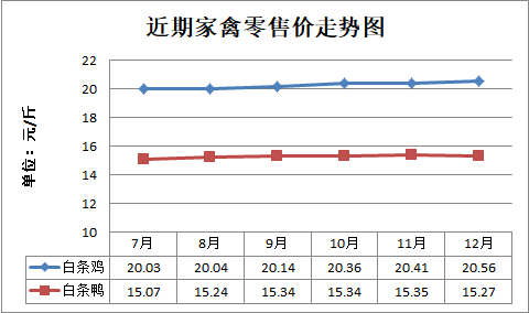 白条鸡、白条鸭零售均价分别为每斤20.56元、15.27元,环比分别上涨0.73%、下降0.52%,同比分别上涨4.42%、下降0.78%;鸡蛋、鸭蛋零售均价分别为每斤6.55元、7.69元,环比分别持平、下降0.52%,同比分别下降3.39%、下降4.23%。