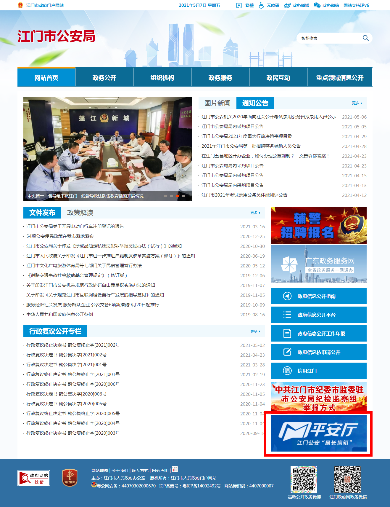 江门市公安局正式在互联网和“江门公安”微信平台