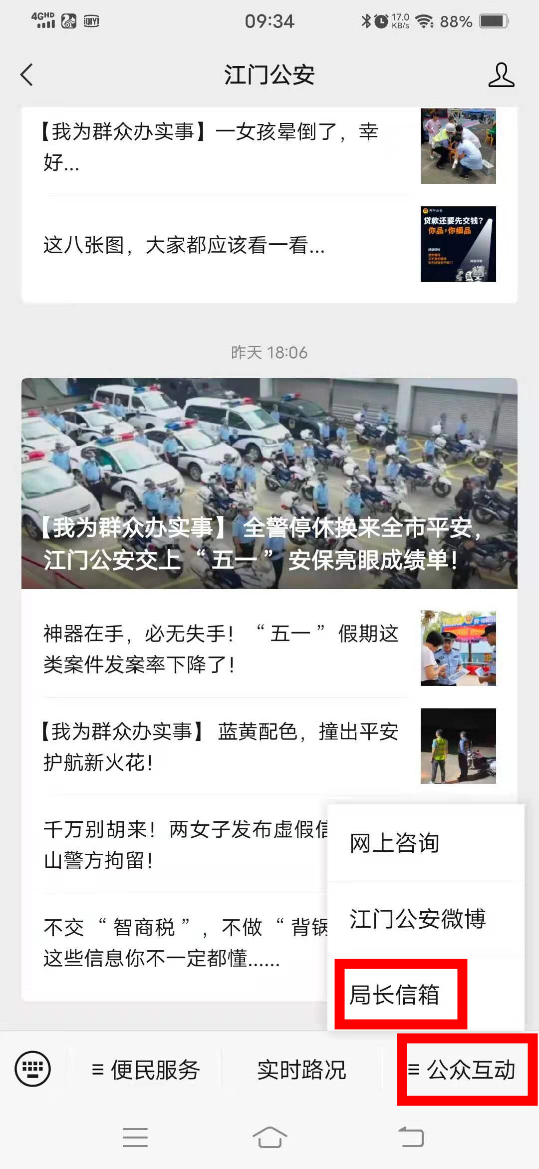 方式二:点击江门市公安局微信公众号“江门公安”