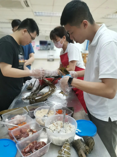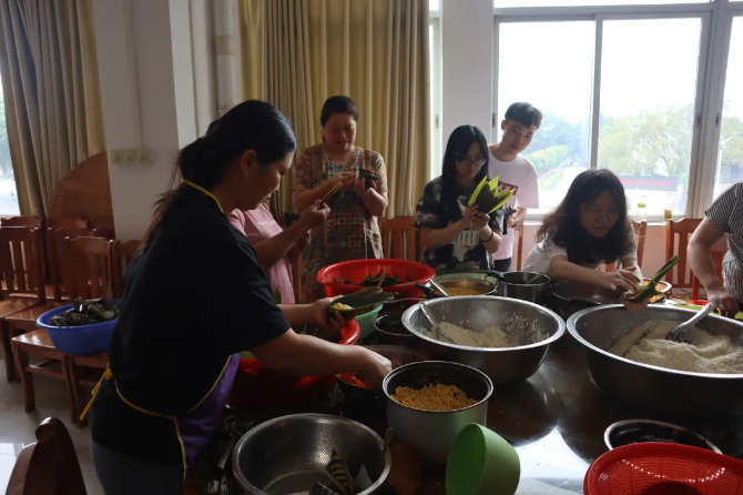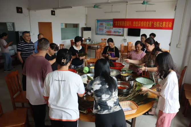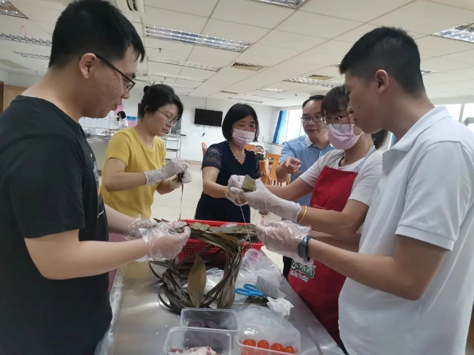端午近,粽香飘,为弘扬中华民族传统佳节文化,丰富单位员工的文化生活,6月15日下午,鹤山公路事务中心工会以“‘粽’是公路情”为主题,组织单位职工会员在机关职工食堂开展了迎端午包粽子活动。 活动开始,首先由熟手同事作包粽子的演示,为大家详细讲解包粽子方法与歩骤;随后,大家一起动手包粽子,有的同事动作麻利,折粽叶、放糯米、添馅料、缠粽线一气呵成。也有的新手,好不容易卷好粽叶,糯米又漏了出来……现场欢声笑语始起彼伏,通过大家通力合作,粽子摆满了桌子。 通过这次活动,职工会员感受到传统习俗的魅力,在倡导“勤劳节俭、遵德守礼”传统美德的同时,更增进了职工们的凝聚力和向心力。