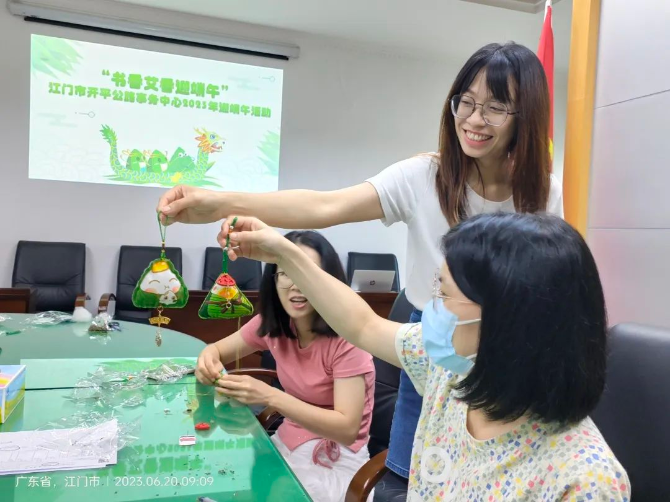临近中国传统节日端午节,6月20日上午,开平公路事务中心工会开展“书香艾香迎端午”活动,邀请职工用不一样的方式品味端午“味道”。 岁至端午,又念屈原。活动由青年诵读《端午祭屈原》拉开序幕,通过屈原一首首穿越岁月长河传唱至今的诗词,职工们充分感受到屈原爱国忧民、坚持真理、宁死不屈的精神,“端午”二字已成传承、弘扬、激发民族精神和爱国情感的载体。 岁至端午,艾香袅袅。佩戴香囊是端午节传统习俗之一,有着辟瘟除秽、祈求健康平安之意。活动现场,职工们开展香囊DIY活动,从穿针引线到填充香料再到钉扣收尾,职工们将艾草及最美好的祝福缝进香囊里,一个个芳香扑鼻的香囊在一双双巧手上下翻舞中诞生,玲珑可爱。现场氛围浓厚而热烈,活动现场欢声笑语和艾草的清香交织在一起,不仅使职工们进一步了解了中国传统节日文化和习俗,还充分感受工会家庭的温暖。 岁至端午,安康送给公路人。端午节龙舟水频发,同时是群众假期出行高峰,为了守护更多人的团圆、守护更多人的平安出行,公路人风里来、雨里去,在岗值守、从不打烊。让我们祝愿广大公路人工作顺利、家庭幸福、端午安康!
