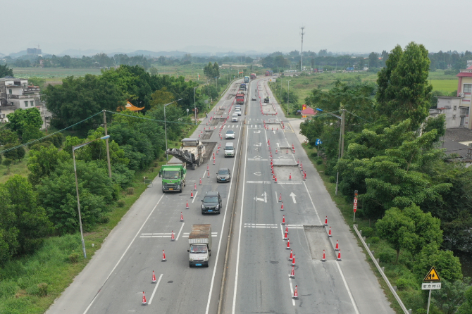 国道G325线是开平市内重要交通通道,连接鹤山市、恩平市,途经开平中心城区,在开平市公路交通运输网中占据重要位置。近年来,这条城市动脉的交通量不断增大,且重车辆比例高,在长期重交通荷载作用下,路面逐渐出现断板、破碎等病害,对行车安全性与舒适性造成很大影响。