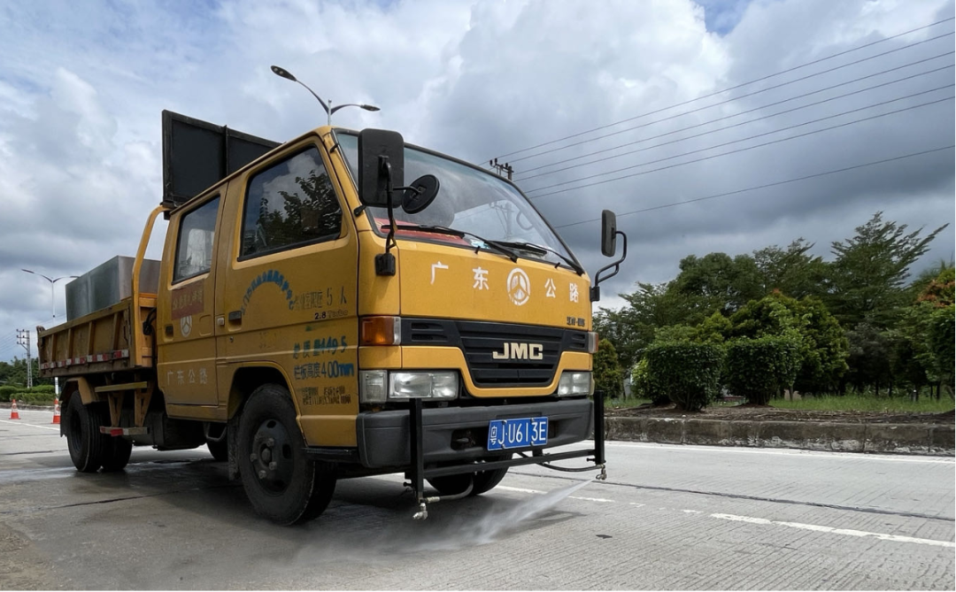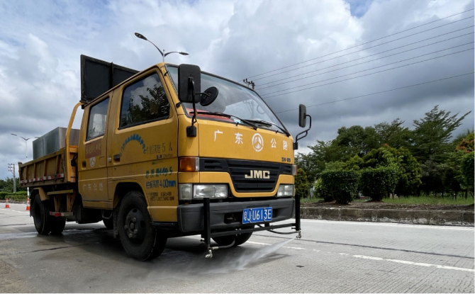 车载式高压喷洗装置是在现有轻型自卸养护车的基础上,安装了可拆卸水箱和新能源高压水泵系统,代替了洒水车并提升了相应功能。经试验,该装置能较好完成养护中的路面污染、交安设施及桥梁伸缩缝冲洗、泄水孔疏通清理等工作,并满足绿化喷洒等综合养护高压用水需求。该装置的路面清洗效能可达到每天20公里,相当于7个人工清扫的工作量,实现了小改造大成效的目标,不仅能有效降低养护工人劳动强度,保障作业安全和交通顺畅,还能大幅提升日常养护工作效率,更好助力公路高质量发展。(图文/鹤山公路事务中心 崔百康)