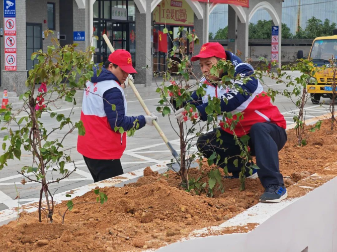 活动现场呈现一派热火朝天的景象,党员志愿者们充分发扬凝聚齐心、团结合作的精神,从搬运花苗、铲土挖坑到扶苗回填,封土淋水,认真做好每一道工序。现场气氛热烈而融洽,为服务区增添了一片生机勃勃的绿化。期间,志愿者们还向路过的司乘朋友提供出行咨询、通行指引、文明劝导等志愿服务工作。