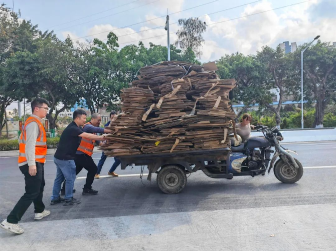 近日,市区公路事务中心的工作人员在巡查至省道S272线江沙路桐乐路口时,发现有一辆满载纸皮的三轮车停在路口处一动不动,驾驶员神色焦急,独自在车旁徘徊。由于春运期间公路车流较大,三轮车旁陆续有车辆呼啸而过,险象环生。