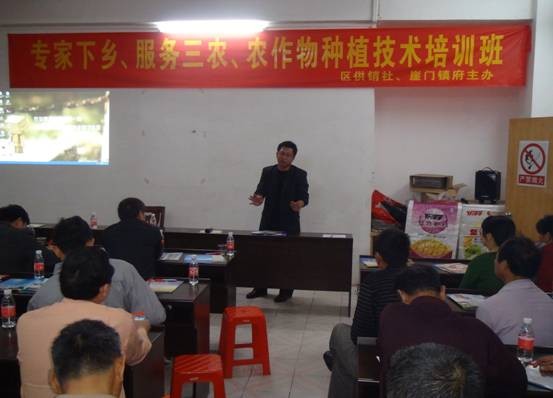 阳春三月,春意盎然。新会区供销社以深入开展党的群众路线教育实践活动为动力,充分发挥服务三农的职能与联系农民群众桥梁纽带作用。于3月19日会同崖门镇政府在崖西供销社举办了“专家下乡,服务三农”农作物种植技术培训班,致力提高农民农作物耕作技术水平,助农民致富。新会区崖门镇农办、崖门镇各村委会抓农业生产的主任、种植大户、化肥农药经营大户、新会区供销社副主任任锡安、黄社俭和综合业务股全体同志及各基层社主任共80多人参加了培训。