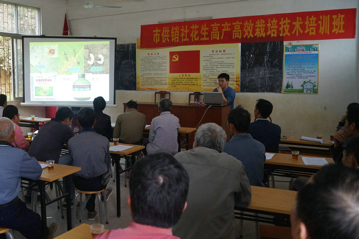 春耕来临之际,台山市供销社顺应农时,积极开展送农技、送农资下乡活动。日前,台山市供销社在深井镇大洞村举办花生高产高效栽培技术培训班,当地50多名花生种植户参加培训。