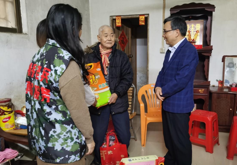 1月17日,市工业和信息化局领导带队前往新会区茶坑村慰问退役军人梁先生,与其促膝交谈,并送上慰问金和新春祝福。慰问人员细致询问他的生活和身体健康情况,叮嘱其要保重身体,积极乐观生活,有困难及时反映。梁先生表示十分感谢党和政府的温暖与关怀,将继续发扬革命传统,感党恩、听党话、跟党走,永葆军人本色。