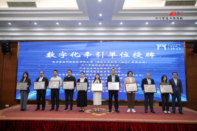 大会还举行了江门市省级中小企业数字化转型城市试点数字化牵引单位与生态伙伴、中小企业签约仪式,并为江门松铃机车有限公司等21家制造业数字化转型标杆示范企业、江门荣信电路板有限公司等10家数字化牵引单位颁发了牌匾,为第二届江门市工业互联网专家委员会专家代表颁发了聘书。建设银行江门分行在会上发布“数转贷”金融服务方案,并专门为江门市数字化转型城市试点意向企业提供融资授信50亿元。江海区政府在会上作推进制造业数字化转型经验介绍,商基网络、鑫蝶软件、维拓科技作数字化转型案例分享和培训。
