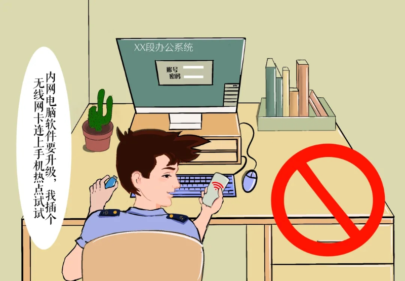 常见错误情形:一是私自将笔记本、台式机、智能手机等设备接入内网;