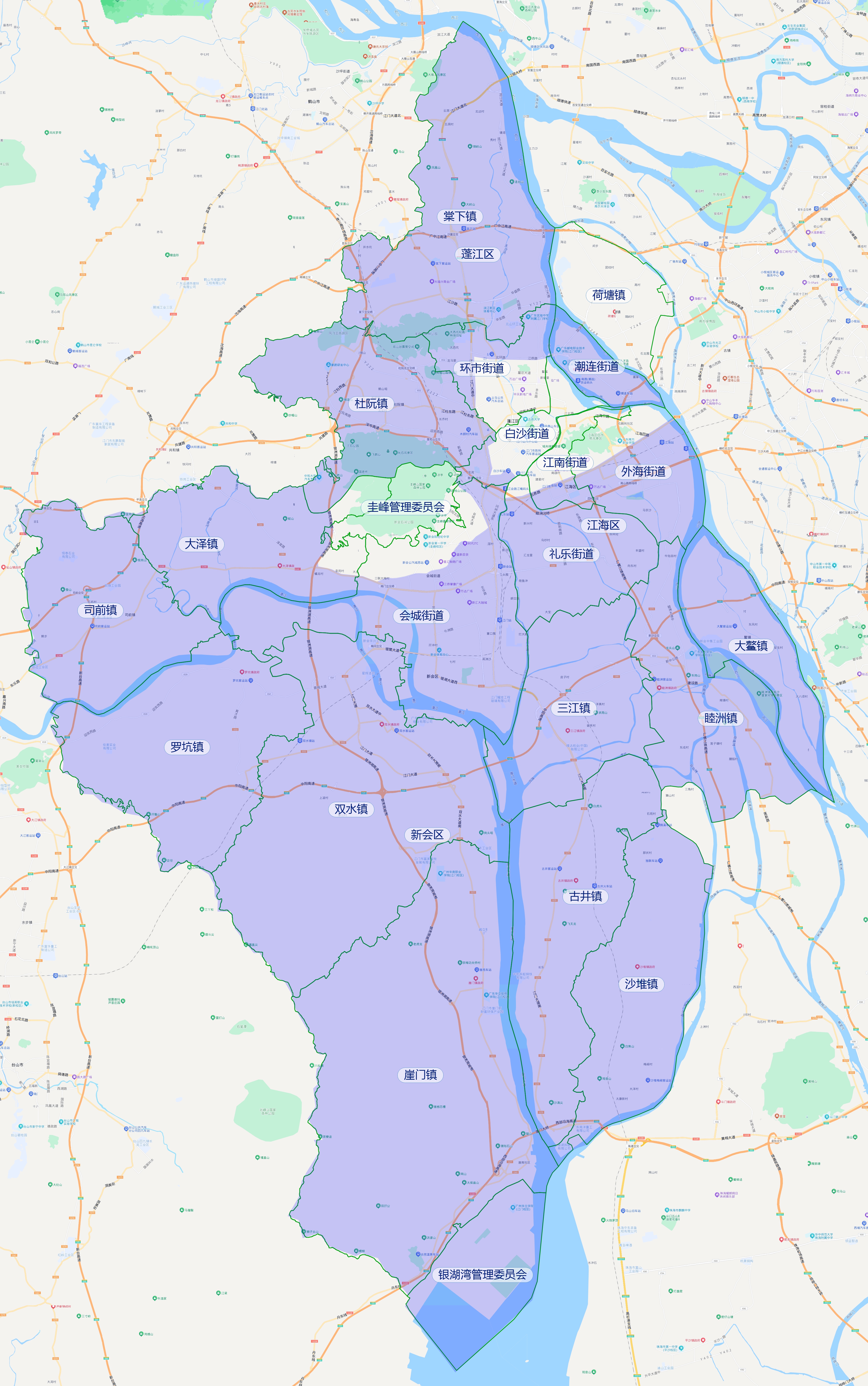 首批开放区域:蓬江区为除荷塘镇外江侨路以北、江门大道以西区域,江海区为五邑路以南区域,新会区为冈州大道以南区域,并且,江门大道龙舟山立交至江门大道南东线大洞桥三江镇官田段、江门大道南西线小冈梅冈牌坊段的主线及辅道,冈州大道与新会大道之间的会城街道,以及五邑路为限行路段,早晚高峰时段(即周一至周五7:00-8:30、17:30-19:00)禁止进行道路测试和示范应用。