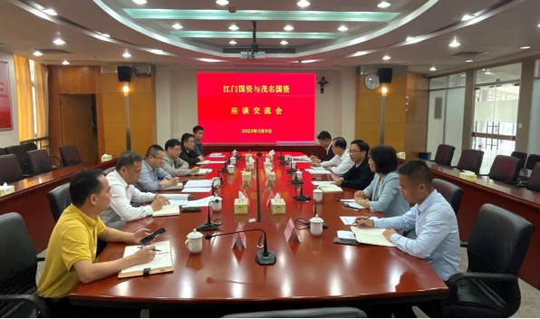江门市国资委党委书记、主任何渝,党委副书记、副主任李健斌,副主任高建营,茂名市国资委党委委员、副主任周映霞及相关科室、相关企业负责人参加了交流活动。