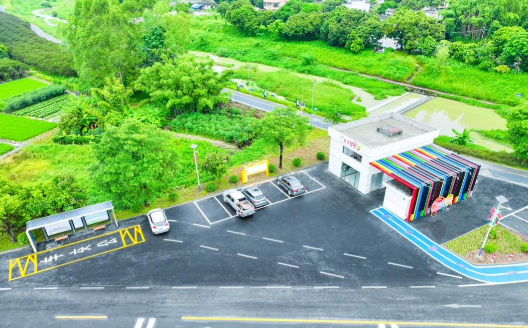 尤其让人瞩目的是,这条示范路段旁边还新建了一个五十驿站。它集交通、休闲、文艺、观光、服务等功能于一体,配备有停车区、候乘区、公共厕所、免费热水点、小型咖啡吧等便民服务功能,驿站内的橱柜摆放着各种四九特产,成为当地的一个网红打卡点,达到了以路兴旅惠民的效果。