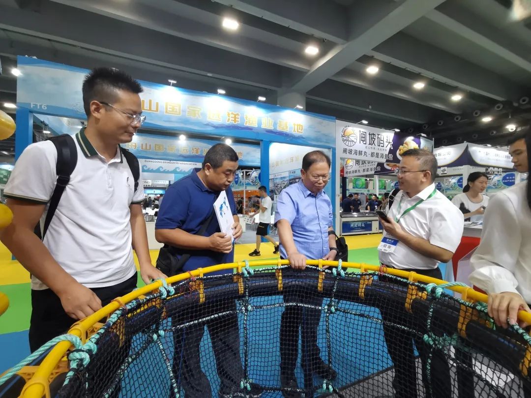 陈志量一行逐一参观了海洋牧场、广东名特优水产品、预制菜及中央厨房产品、养殖动保及加工设备、冷藏冷链等多个展区,仔细观看深水网箱、种苗基地、数字化养殖等参展产品的现场展示,并与展商推介人员深入交谈,了解产品性能、技术特点、供需对接等情况。