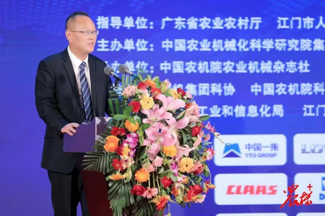 大地飞歌稻谷黄,田间地头两头忙,丹桂飘香粒归仓!在这个千里镶黄的丰收时节,为全力奋战“百千万工程”,贯彻落实市委十四届五次全会精神,积极推动广东(江门)智慧农机产业园招商工作,主动对接涉农企业,引进优质产业资源,推动广东(江门)智慧农机产业园高质量发展,9月24日,在广东省农业农村厅、江门市人民政府的指导下,台山市人民政府、中国农业机械化科学研究院、江门市城市发展投资集团在台山市联合举办2023第十一届中国农机高端论坛暨广东(江门)智慧农机产业园投资推介大会,论坛以“构建高质量农机化生态”为主题。中国工程院院士陈学庚,中国农机院副院长赵博,江门市政府副市长林健生,江门发展集团党委书记、董事长张义栋,华南农业大学常务副校长李君等领导嘉宾出席活动。来自全国各地的农机管理部门、行业学会(协会)、农机企业、科研院所及相关媒体的240余名代表参加活动。