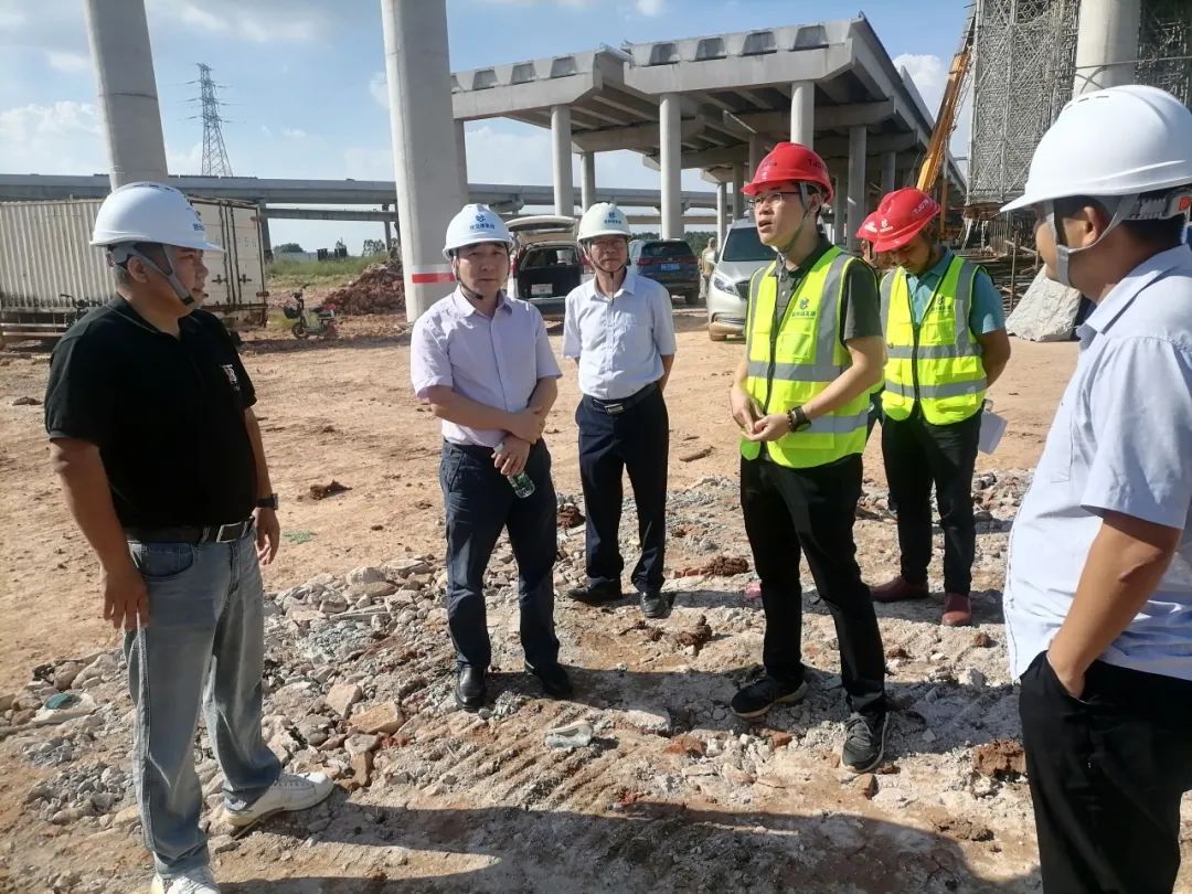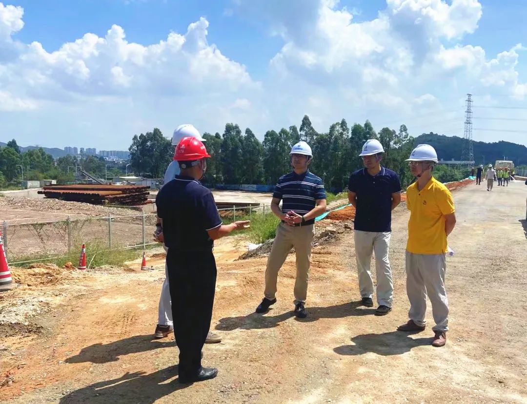 集团副总经理赵海峰带队前往银洲湖高速公路项目TJ07标龙头枢纽立交、房建标崖门服务区房建施工现场检查督查,听取相关负责人介绍项目建设基本情况、安全生产工作落实情况,重点检查了临边防护、临电设施、排水系统、土方堆放、钢筋加工等情况。