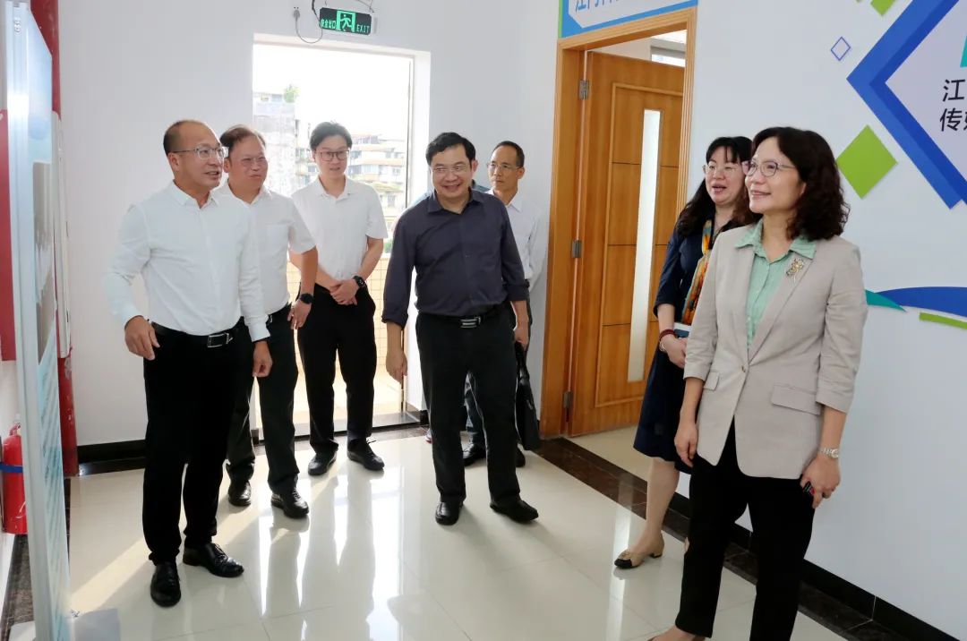 周佩珊一行先后来到建设中的江门数字科普馆、江门科普传媒集团文化展厅,了解江门市信息技术应用创新联合实验室运作情况及机构职能、江门数字科普馆建设进展及场馆规划、江门科普传媒集团科普研学活动开展等方面情况,强调要充分发挥场地资源优势,以增强交互体验感为切入点和着力点,进一步完善江门数字科普馆设计规划,丰富场馆用途,把江门数字科普馆打造成为科普展示与互动体验相结合的科普教育阵地。
