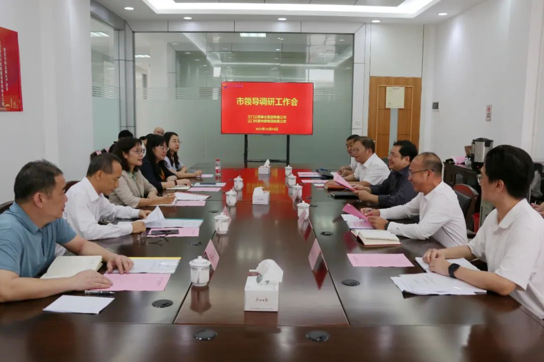 10月24日,江门市副市长周佩珊一行到江门科普传媒集团调研指导工作,深入了解企业运营发展情况。市科技局党组书记、局长刘长虹,市国资委党委副书记、副主任李健斌,市科协副主席颜自能,市教育局三级调研员韦健宁等相关部门负责同志,江门公用集团党委书记、董事长游鑫,江门公用集团党委副书记、总经理、江门科普传媒集团董事长陈志量等领导班子成员及相关部门负责人参加调研。