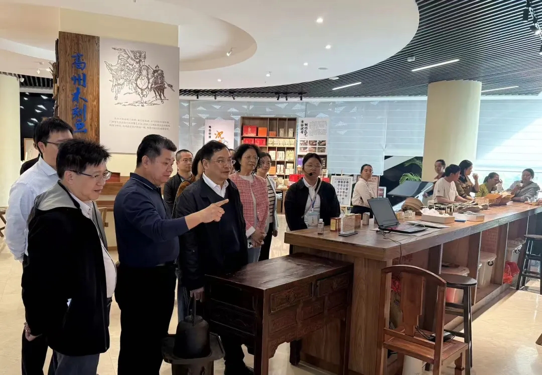 座谈结束后,调研组先后深入高州包茂高速—柏桥服务区与电白区观珠镇沙垌沉香街现场,实地调研茂名市国资国企赋能县域发展的生动实践。在柏桥高速服务区,调研该项目由传统服务区提质升级为广东首个荔枝文化主题开放式综合体的转型历程,了解项目通过“交通引流、产业增值”模式带动地方农副产品产销对接、实现消费帮扶等成效以及将荔枝文化展示、旅游体验、商贸消费深度融合的经验做法。在沙垌沉香街,调研组实地察看了解当地沉香产业发展的具体情况。