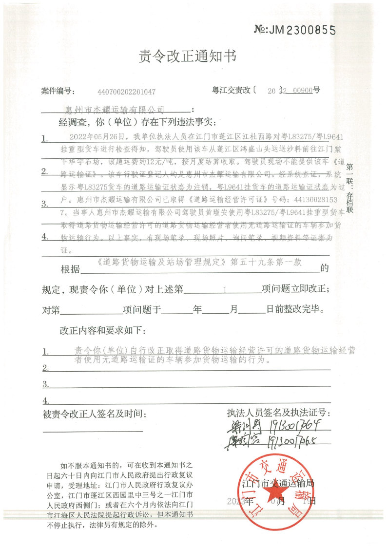 你(单位)因违反交通运输行政管理法规,本机关已作出行政处罚决定和责令改正通知书(具体内容详见附件)。依照《中华人民共和国民事诉讼法》第九十二条的规定,因受送达人采用其他方式无法送达,现向你(单位)公告送达《行政处罚决定书》和《责令改正通知书》。自公告之日起,经过30日即视为送达。