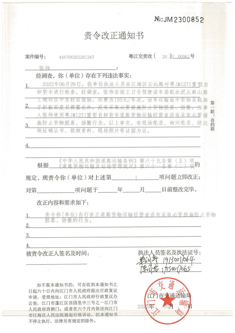 你(单位)因违反交通运输行政管理法规,本机关已作出行政处罚决定和责令改正通知书(具体内容详见附件)。依照《中华人民共和国民事诉讼法》第九十二条的规定,因受送达人采用其他方式无法送达,现向你(单位)公告送达《行政处罚决定书》和《责令改正通知书》。自公告之日起,经过30日即视为送达。