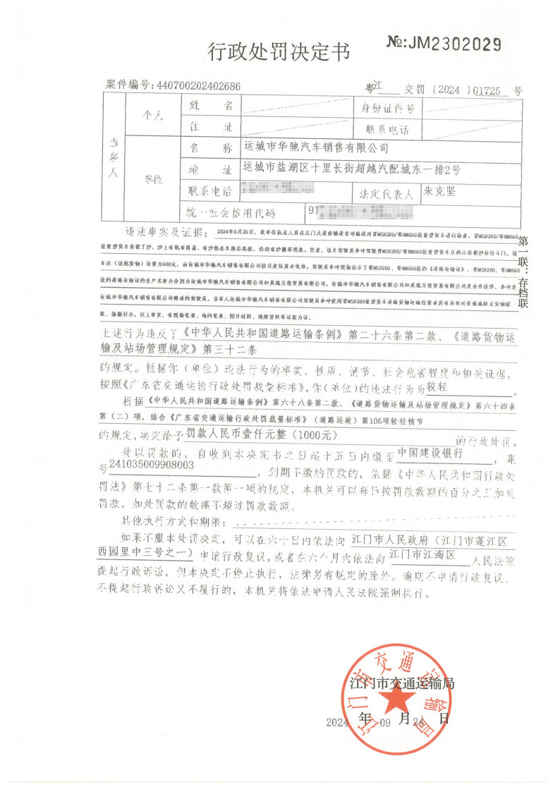 你(单位)因违反交通运输行政管理法规,本机关已作出行政处罚决定和责令改正通知书(具体内容详见附件)。依照《中华人民共和国民事诉讼法》第九十五条的规定,因受送达人采用其他方式无法送达,现向你(单位)公告送达《行政处罚决定书》和《责令改正通知书》。自公告之日起,经过30日即视为送达。