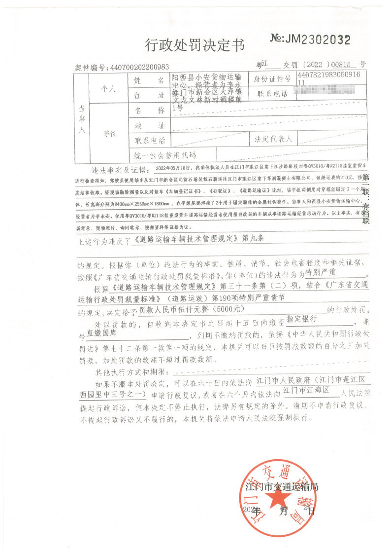 联系地址:江门市潮连大道18号江门市交通运输局违章处理窗口,电话:0750-3887771。