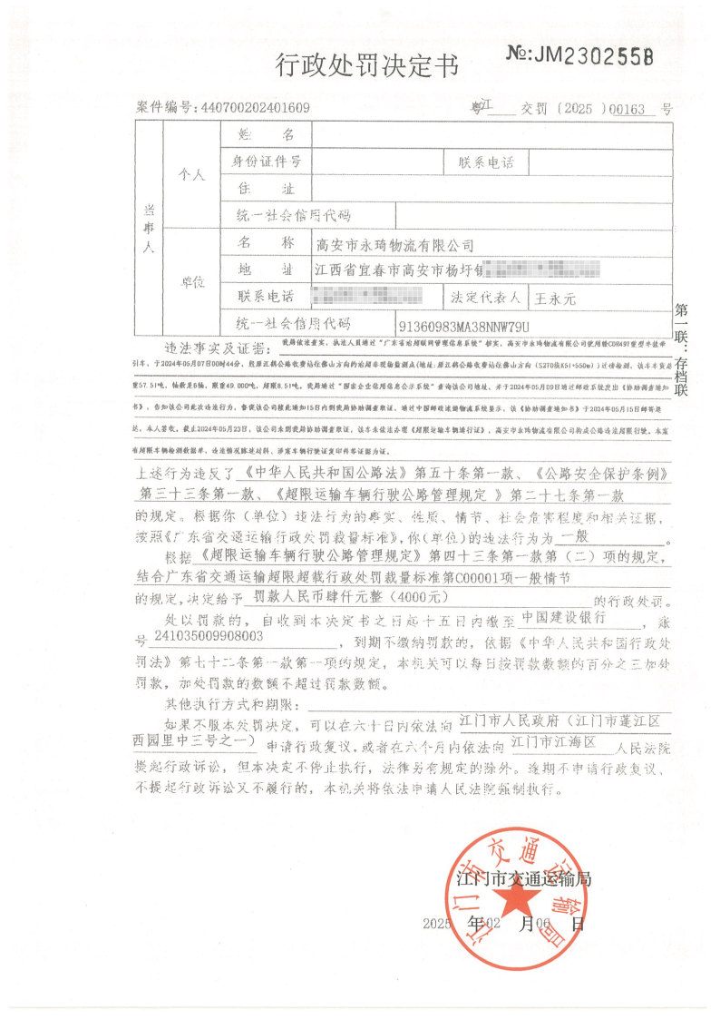 你(单位)因违反交通运输行政管理法规,本机关已作出行政处罚决定和责令改正通知书(具体内容详见附件)。依照《中华人民共和国民事诉讼法》第九十五条的规定,因受送达人采用其他方式无法送达,现向你(单位)公告送达《行政处罚决定书》和《责令改正通知书》。自公告之日起,经过30日即视为送达。