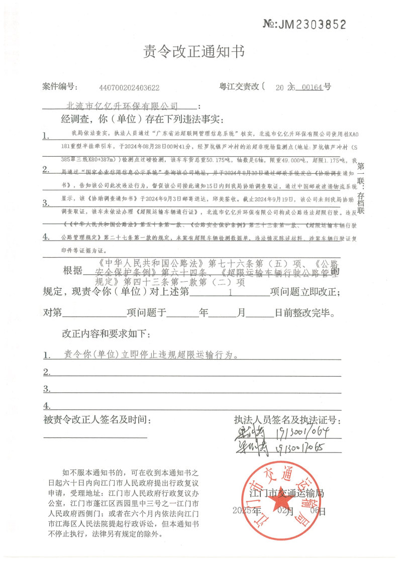 如不服处罚决定,可以自《行政处罚决定书》和《责令改正通知书》送达之日起60日内向江门市人民政府申请行政复议,或者在6个月内依法向江门市江海区人民法院提起行政诉讼,但行政处罚决定不停止执行,法律另有规定的除外。逾期不申请行政复议、不提起行政诉讼又不履行的,本机关将依法申请人民法院强制执行或者依照有关规定强制执行。