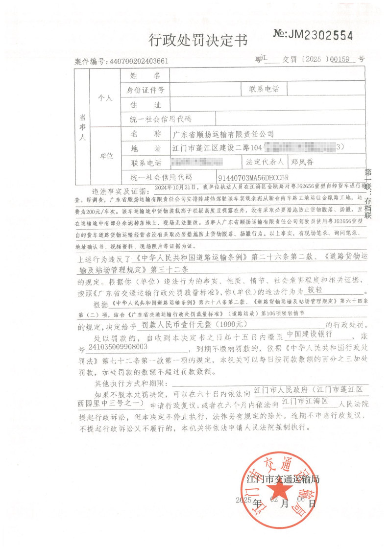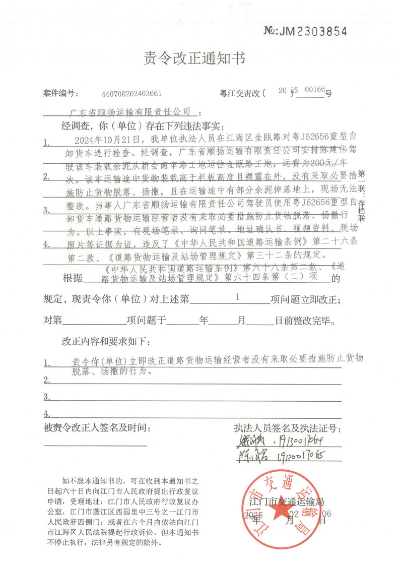 你(单位)因违反交通运输行政管理法规,本机关已作出行政处罚决定和责令改正通知书(具体内容详见附件)。依照《中华人民共和国民事诉讼法》第九十五条的规定,因受送达人采用其他方式无法送达,现向你(单位)公告送达《行政处罚决定书》和《责令改正通知书》。自公告之日起,经过30日即视为送达。