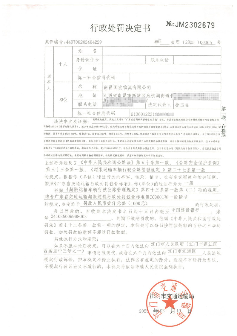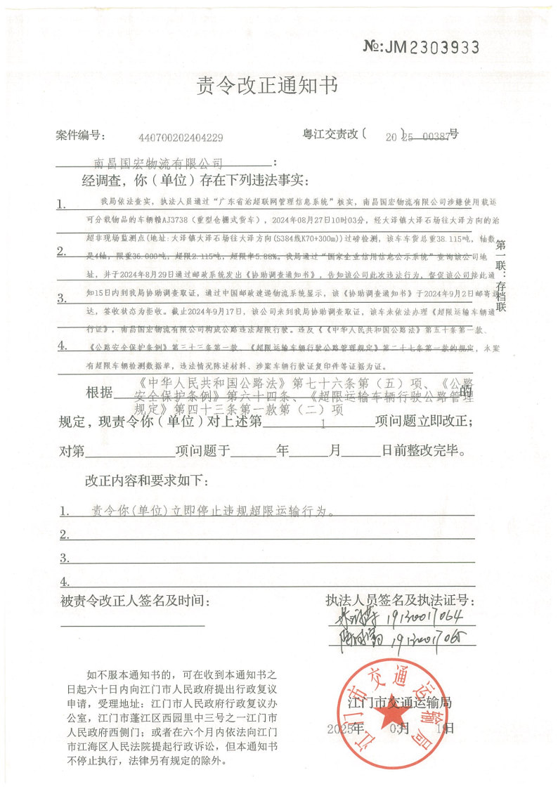 你(单位)因违反交通运输行政管理法规,本机关已作出行政处罚决定和责令改正通知书(具体内容详见附件)。依照《中华人民共和国民事诉讼法》第九十五条的规定,因受送达人采用其他方式无法送达,现向你(单位)公告送达《行政处罚决定书》和《责令改正通知书》。自公告之日起,经过30日即视为送达。