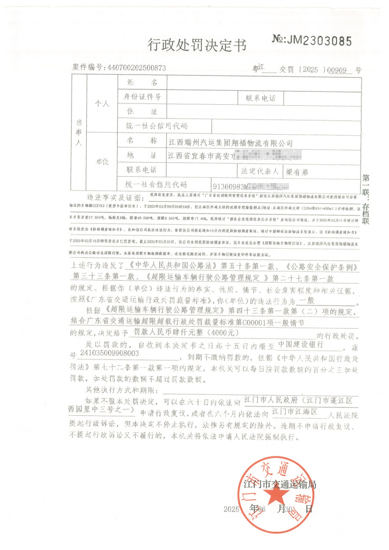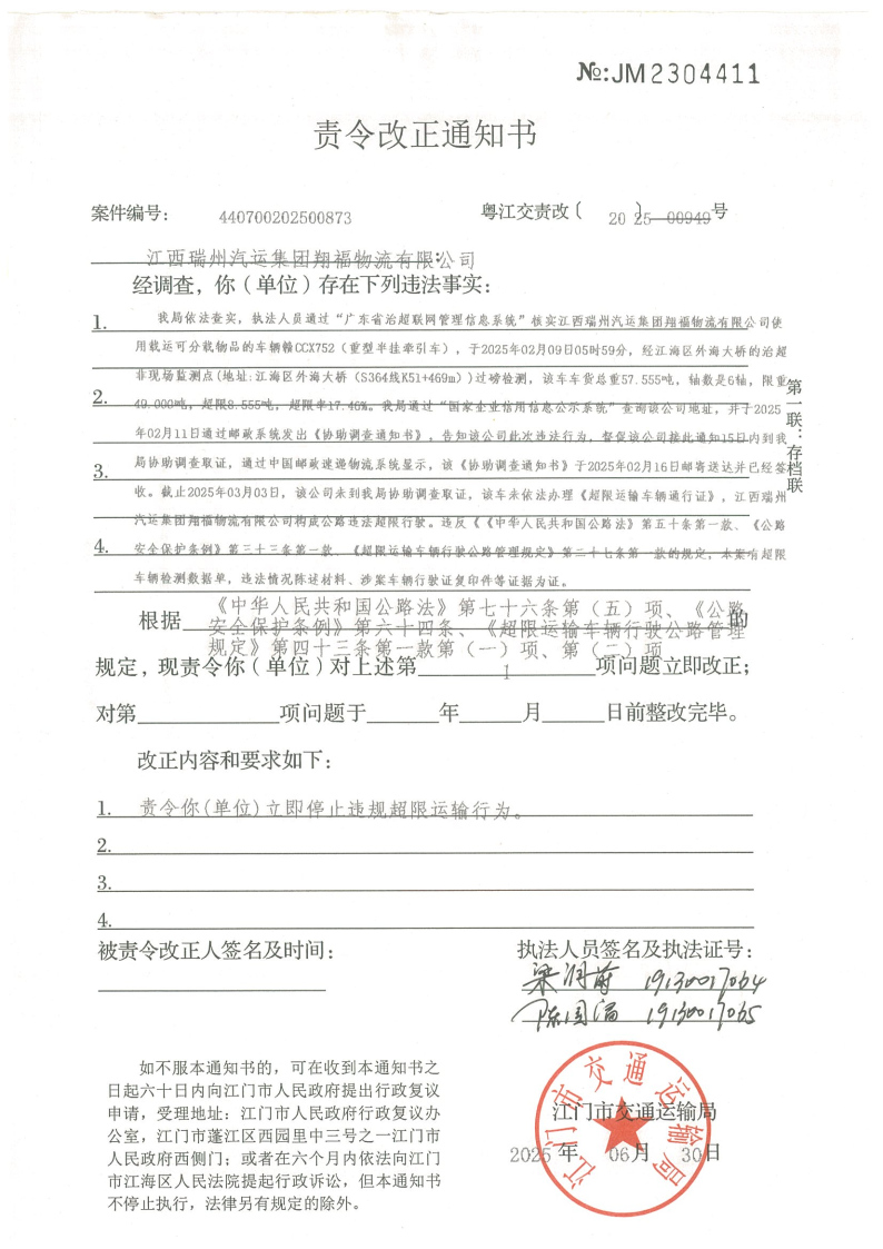 你(单位)因违反交通运输行政管理法规,本机关已作出行政处罚决定和责令改正通知书(具体内容详见附件)。依照《中华人民共和国民事诉讼法》第九十五条的规定,因受送达人采用其他方式无法送达,现向你(单位)公告送达《行政处罚决定书》和《责令改正通知书》。自公告之日起,经过30日即视为送达。